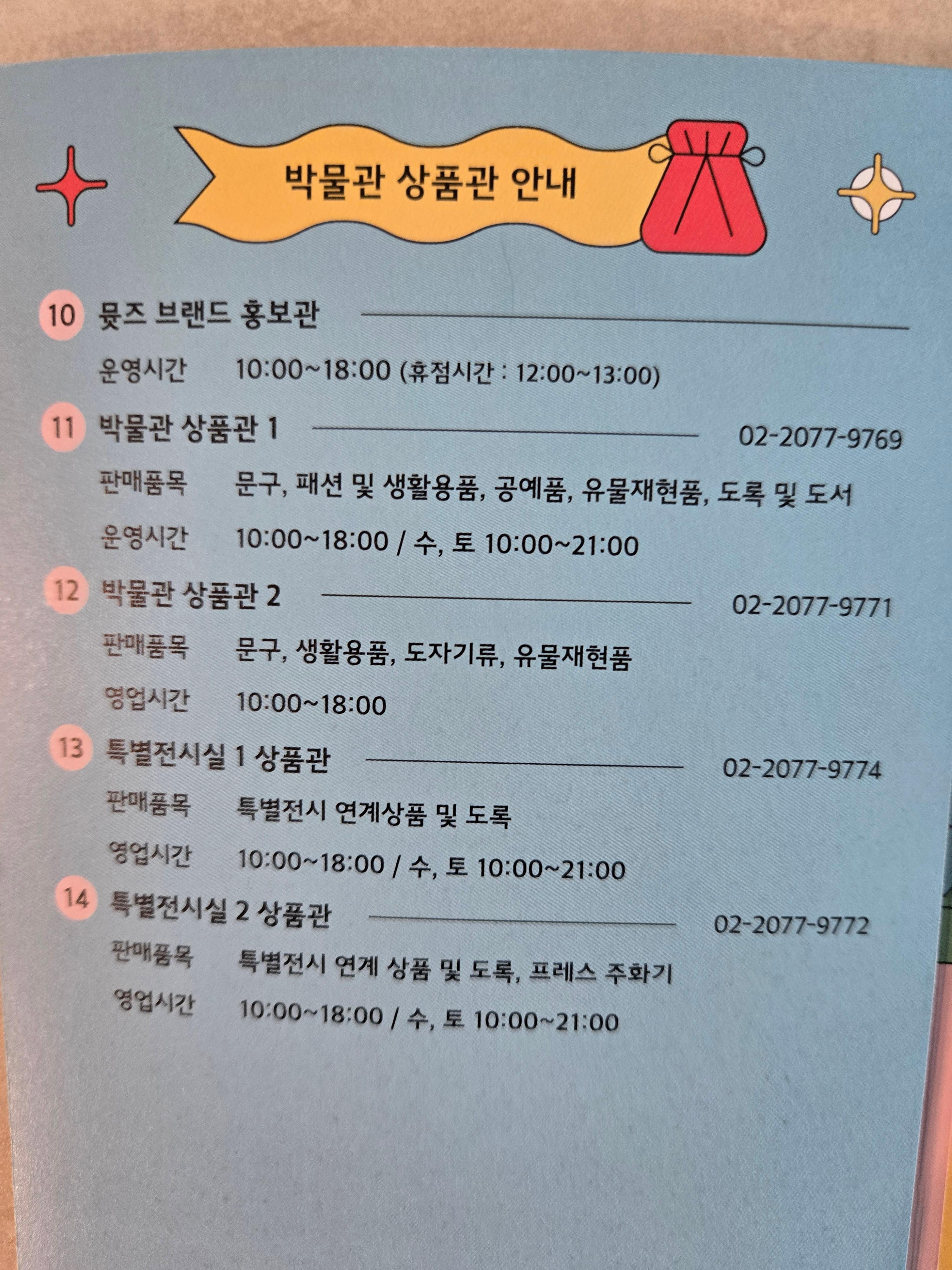• 물품보관소: 특별전시실,상설전시관 1층에 위치 (무료), 큰 짐이나 가방을 안전하게 보관 가능